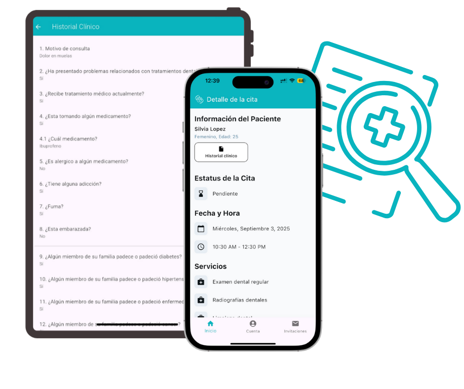 Administra tus citas, consulta historiales clínicos y mantén tu agenda siempre sincronizada, todo desde una app práctica, segura y conectada.